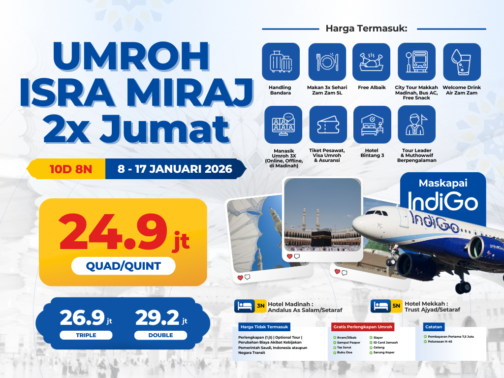 UMROH ISRA MIRAJ 10 HARI - 08 JANUARI 2026 INDIGO